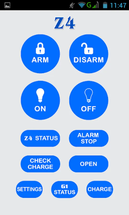 This app sends predefined SMSs commands to GSM switches such as G1 pro to control intruder alarm systems like Z4 Ultra. By using this app you don't need to type the content of SMS and the app will send predefined content to the number you saved in the settings.