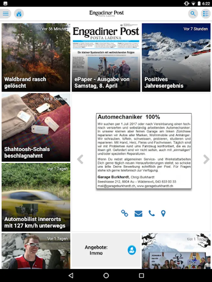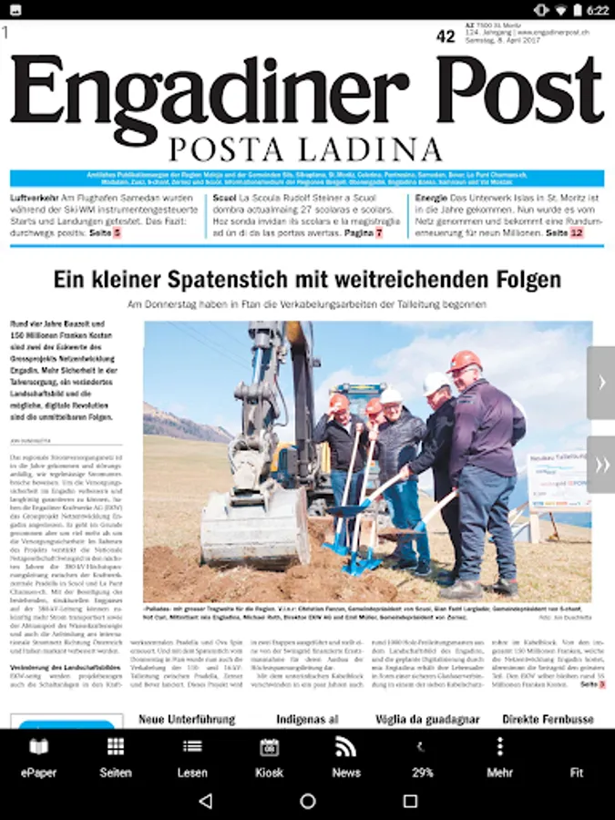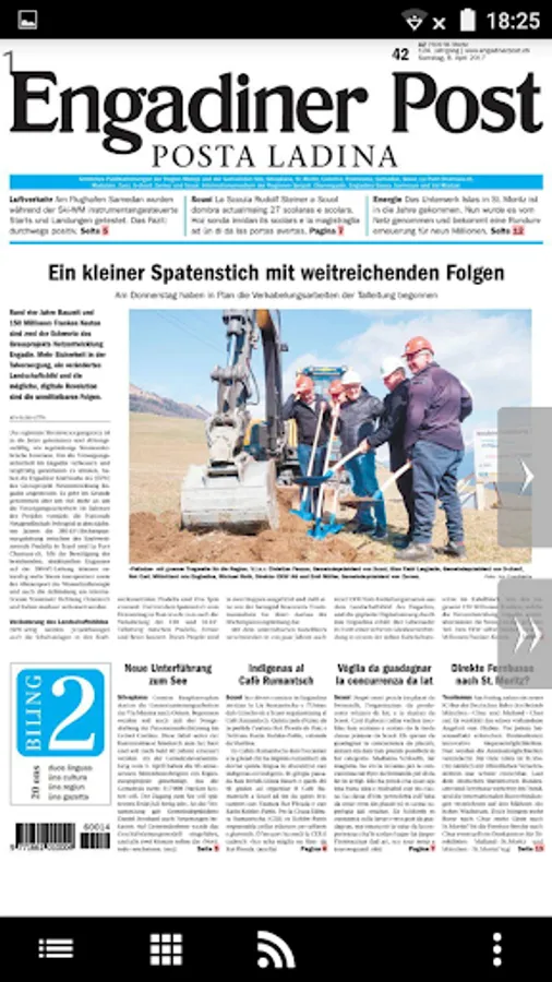 The Engadine Post delivers the latest local news and advertisements from the newspaper in a short form to the Internet, Facebook, Twitter, public TV screens and mobile.