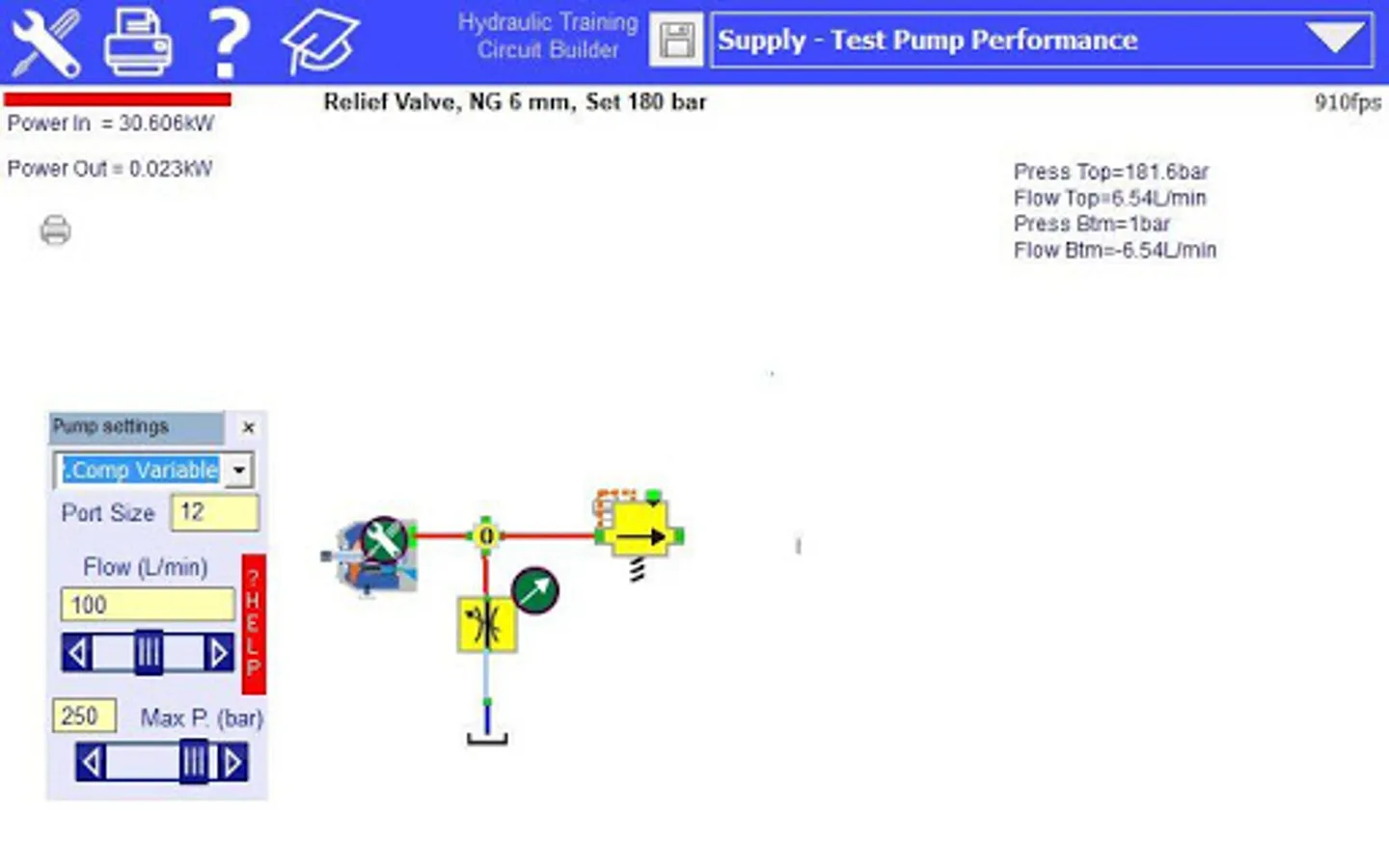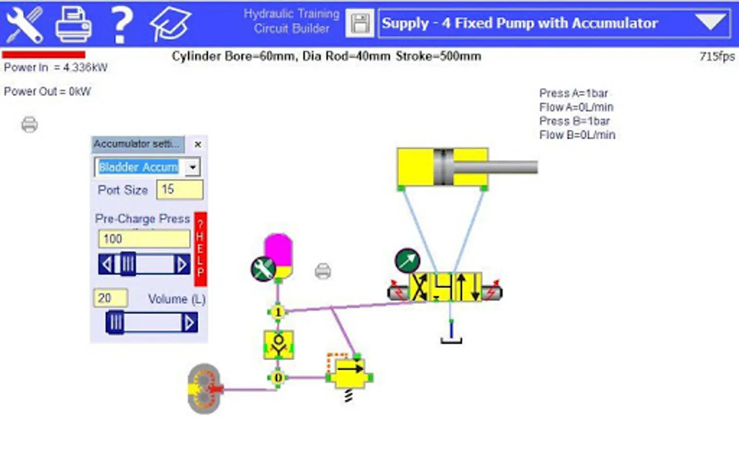 This program has been designed as a hydraulic training tool. It does not contain valve switching dynamics or fluid compressibility factors.
