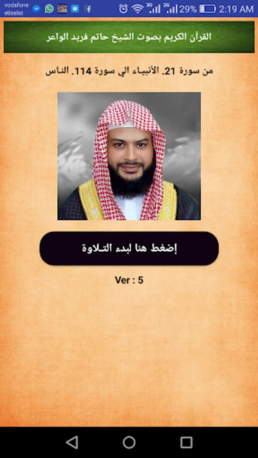 Program to listen to the Koran to Sheikh Hatem Farid Allowaar without internet