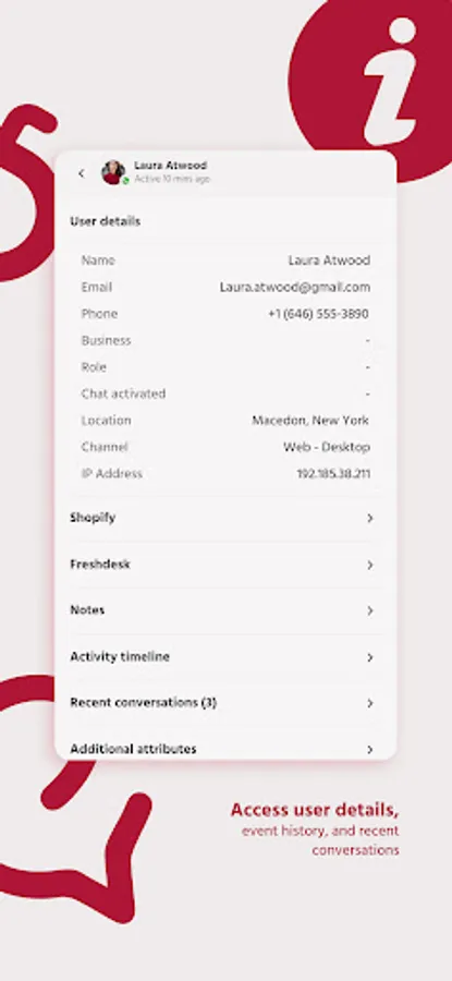 View user details, notes added by other agents, recent conversations, and other data during the chat.