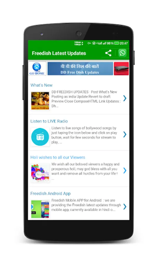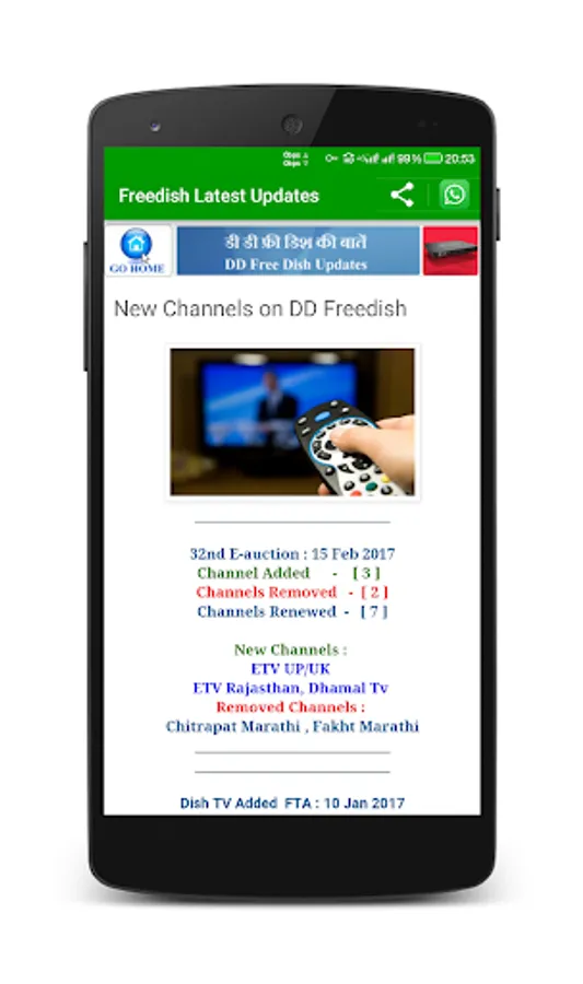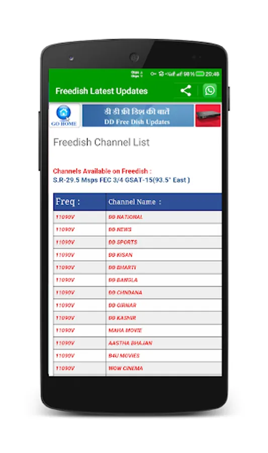 Get the latest updates from the world of freedish india on your mobile in just few clicks, this app will let you know about the latest channels addition , programs and other buzz of freedish india