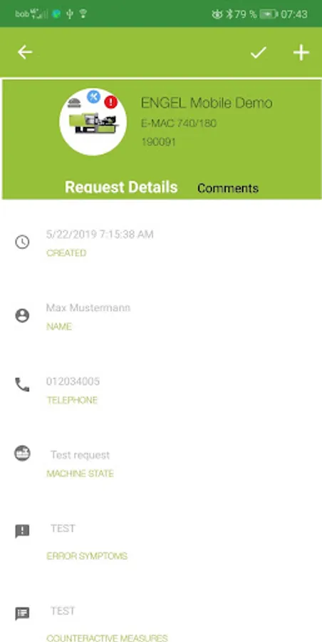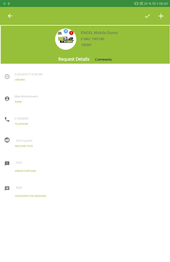 In the case of an error you can quickly and easily submit a service request to ENGEL and follow up the processing of it.