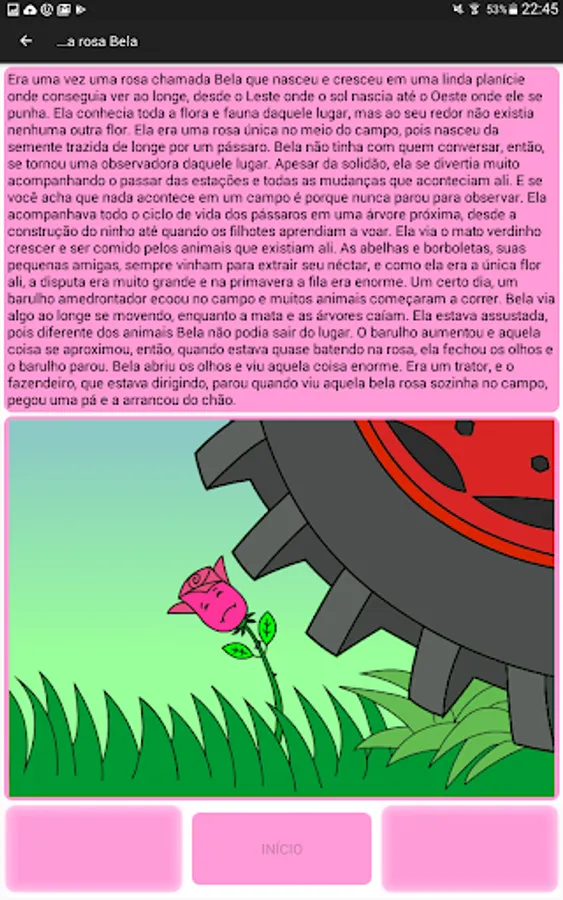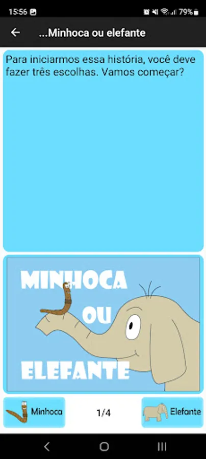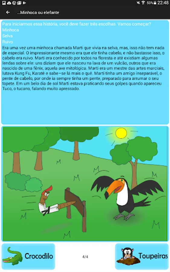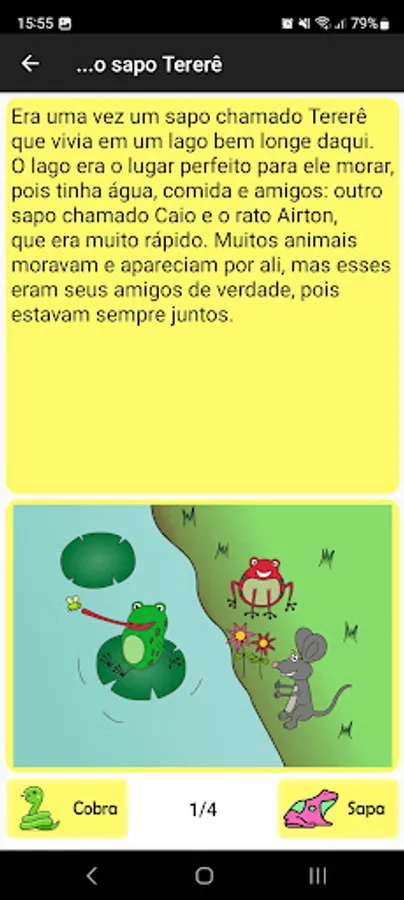 The “Era Uma Vez Interativo” app was developed from the idea of telling new children's stories with the child's interaction, stimulating curiosity, creativity and imagination through different choices, thus creating interactivity between the application and the children.