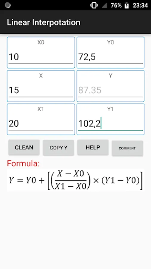 Free application for calculating linear interpolation. Use for data interpolation in various tables: such as thermodynamics, fluids, etc.