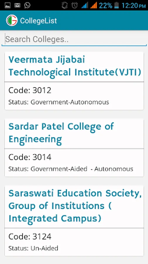 "College Guide" on the Google Play store with detailed information about Engineering Colleges in Maharashtra from 10 different Universities.
