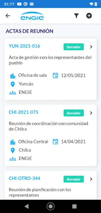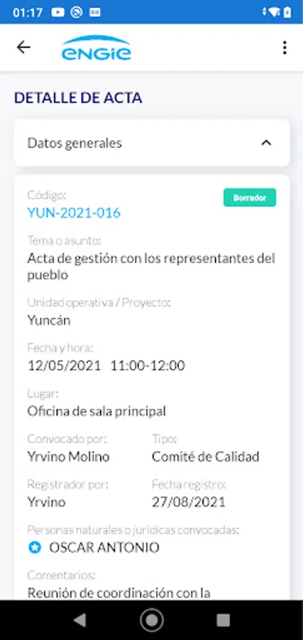 Engie application for the registration and management of meeting minutes, concerns, complaints and claims