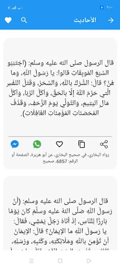 You can now view the hadiths with ease, as the Prophet’s hadiths application provides all the important hadiths in a simple way, and you can search all the hadiths easily.