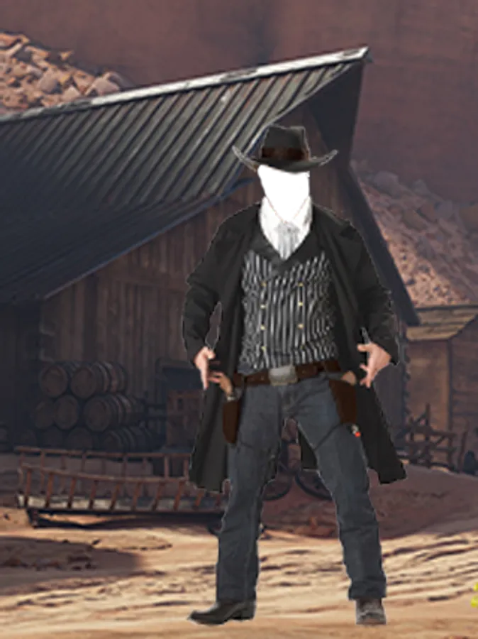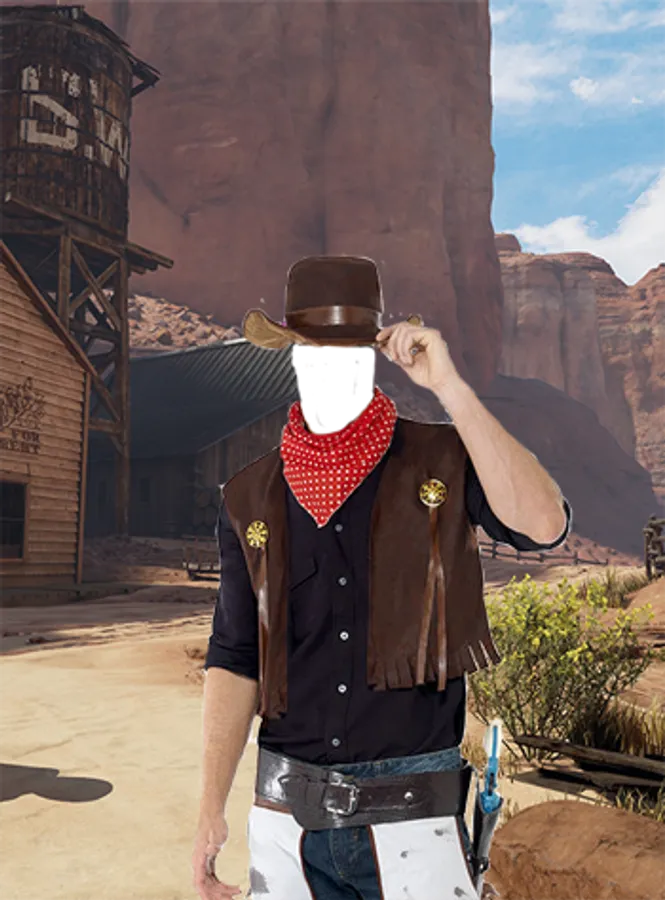 A western legend.With this unique Cowboy Photo Maker you may change yourself to completely Cowboy legend suit.It looks like you are really in a mid of cowboy town or standing on a yellow sand hill.