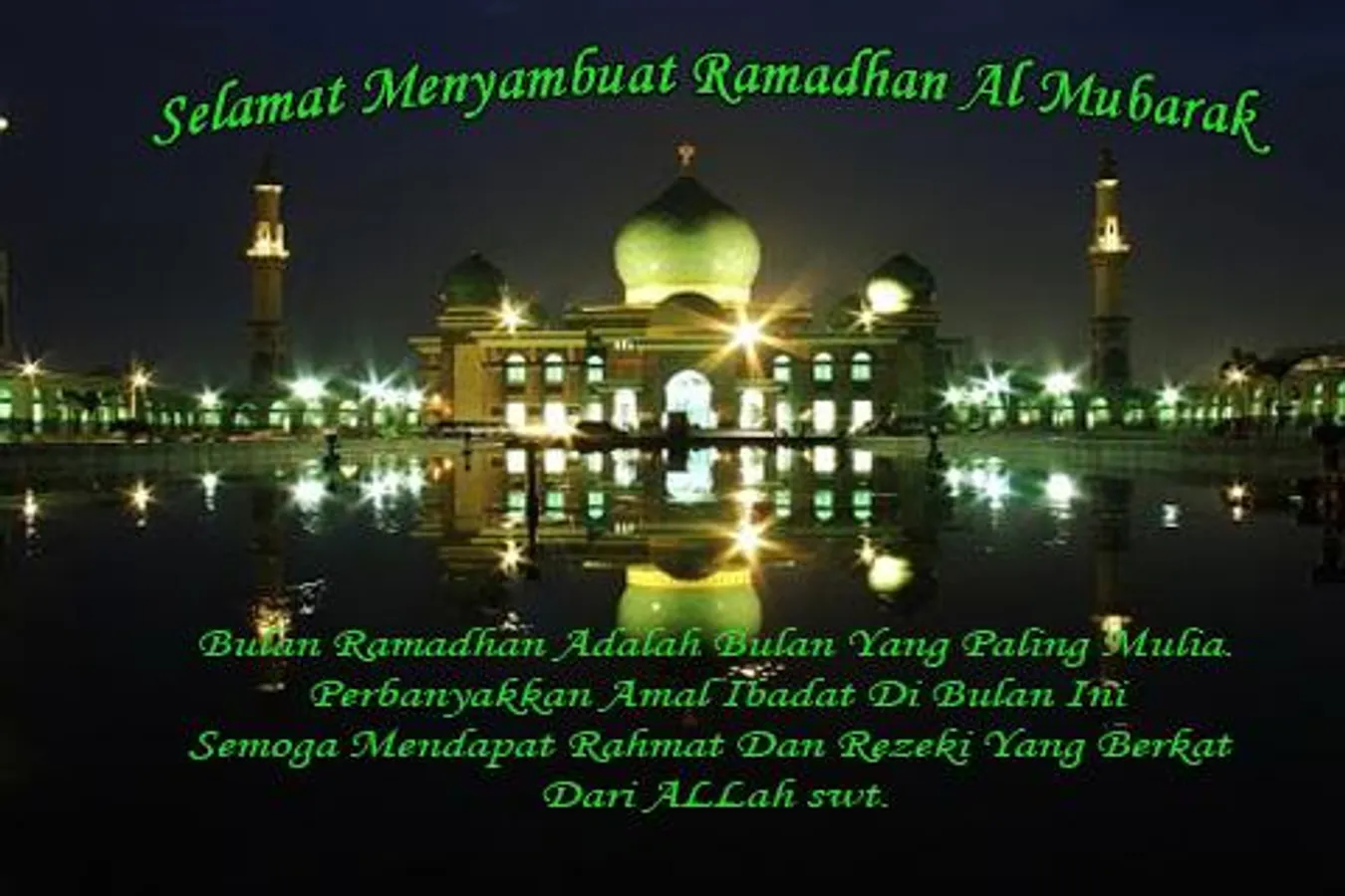 Sampaikan salam Ramadhan kamu kepada semua rakan,saudara dan kenalan yang beragama Islam.Mudah-mudahan dengan salam yang disampaikan akan mengingkatkan mereka tentang pahala yang besar itu.