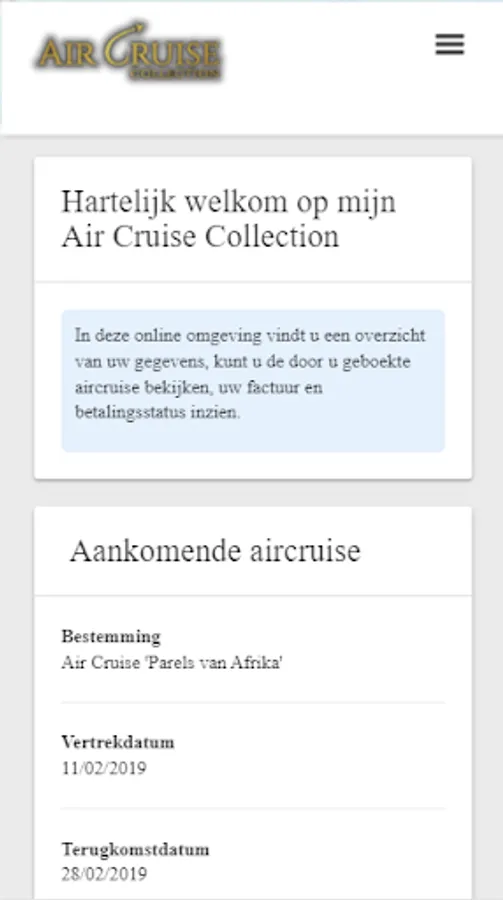 With this App you have access to your booking data, travel data, travel documents and contact details of Air Cruise Collection anytime and anywhere