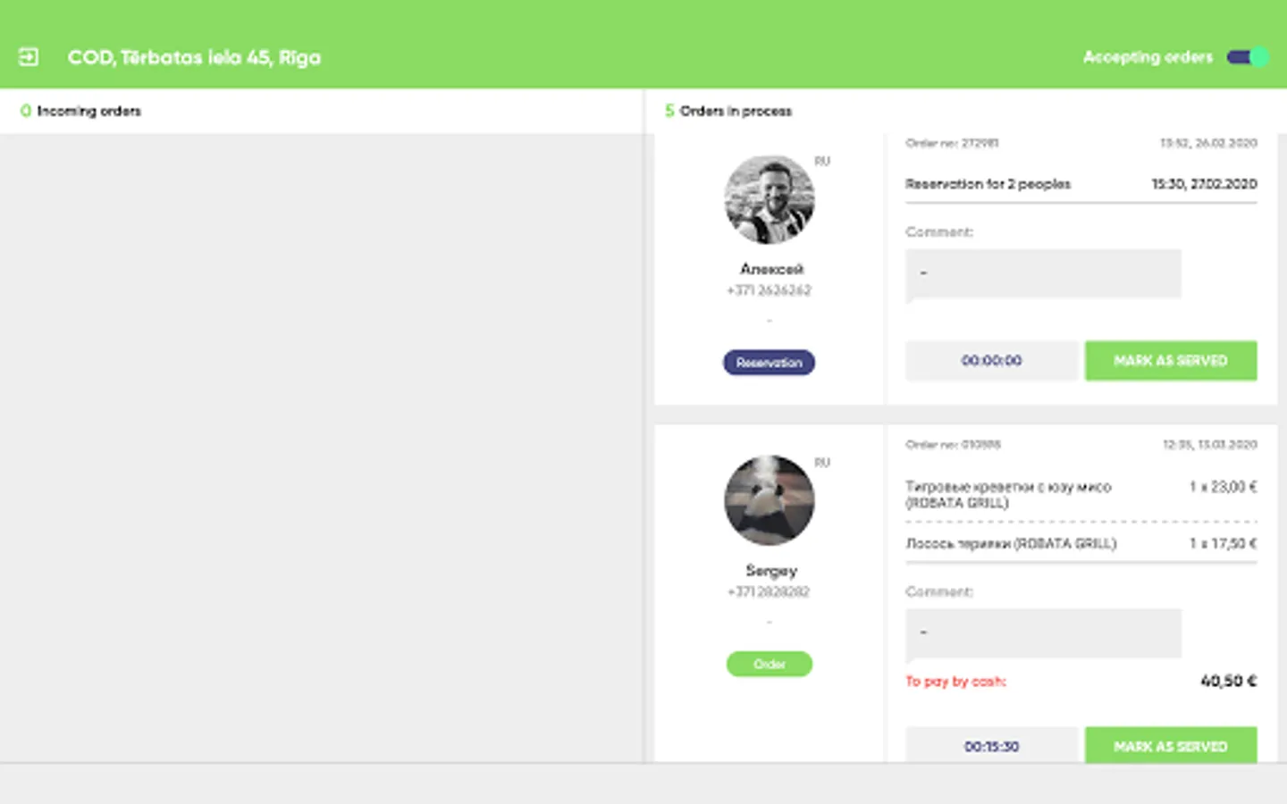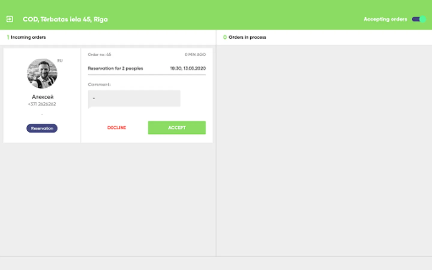 LF Restaurant is an application that provides restaurants the possibility to receive and manage incoming table reservations and orders sent via LimeFox app.