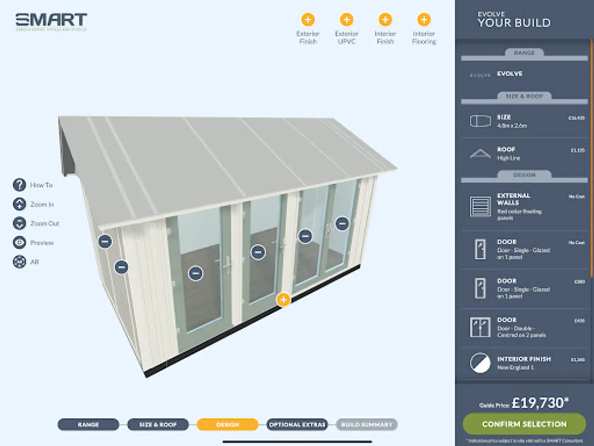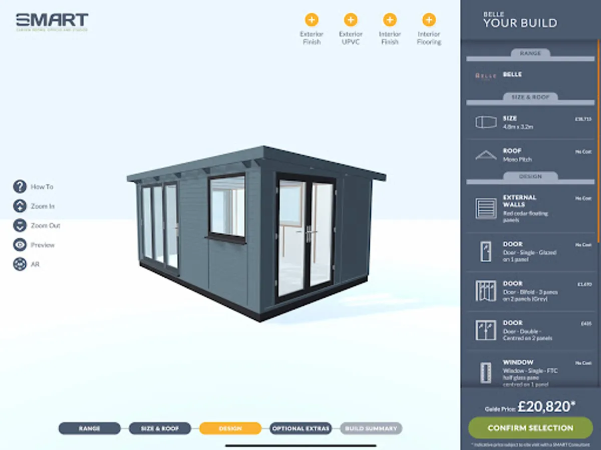 The SMART configurator lets you design and virtually place your 3D garden room into your very own space. Combining latest AR technology with the SMART configurator, you can bring your dream garden room to life like never before.