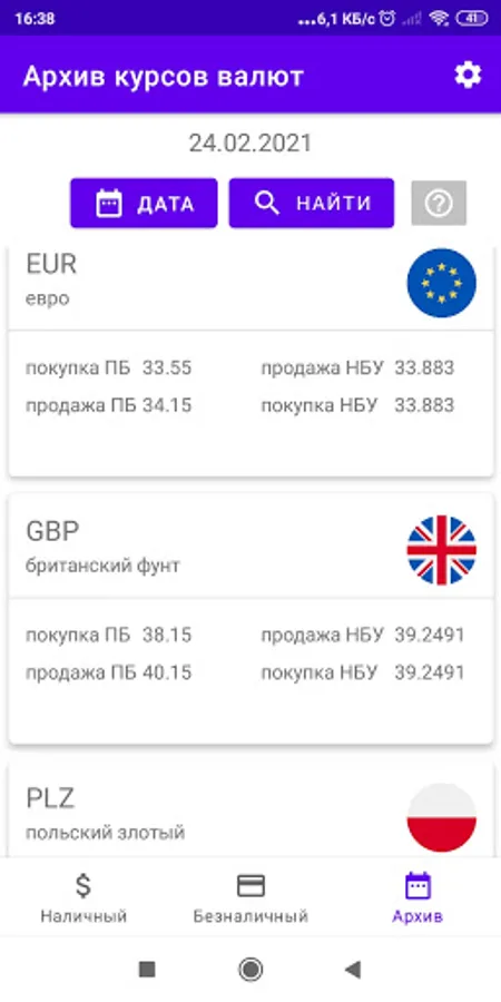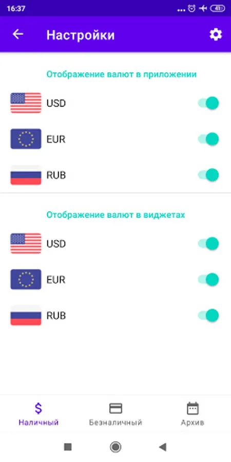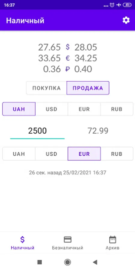 Convenient application for the exchange of four major currencies. Conversion takes into account non-cash and cash rates. The application has a widget for more convenient display of the current state of the course on the screen of your device. With a constant connection to the Internet, the widget updates its information every 15 minutes.