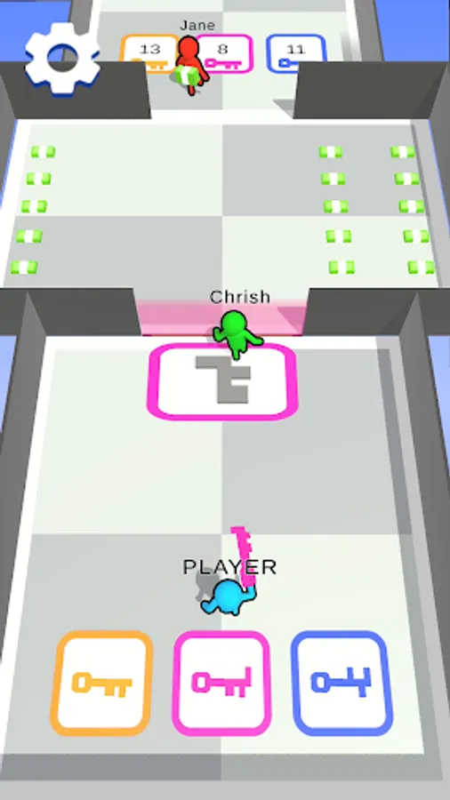 In this game you will try to pick the correct key to open the door in the room. If you are fastest to get to the next room you have more time to collect raw cash! Be the first one in goal to multiply the cash collected!