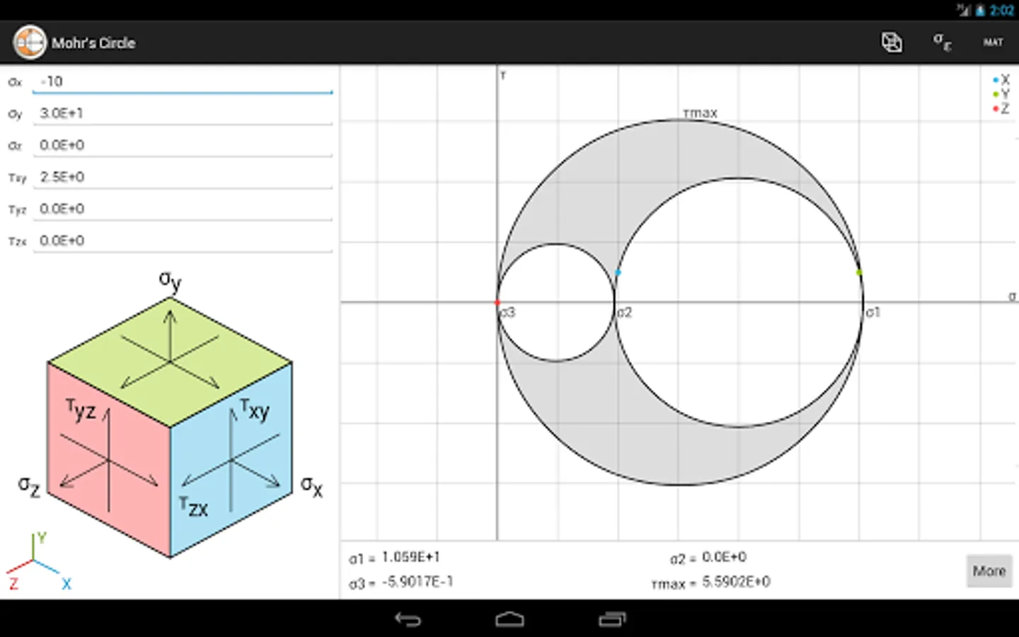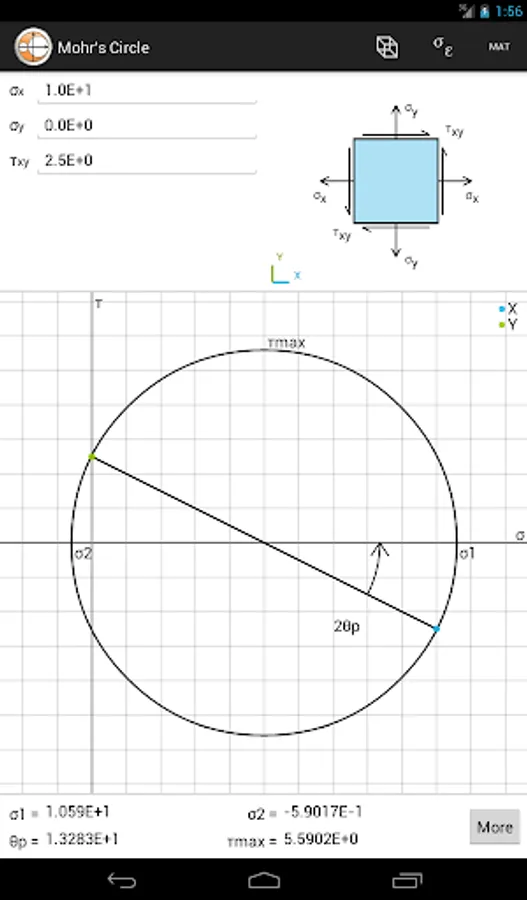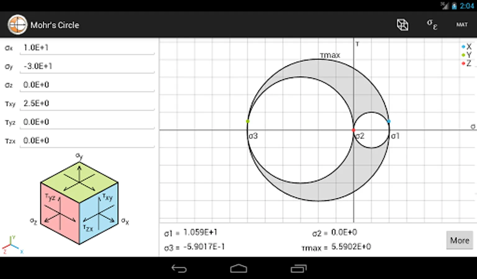 This Mohr's Circle calculator for Android makes it easy to generate Mohr's Circle for stress.