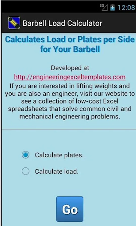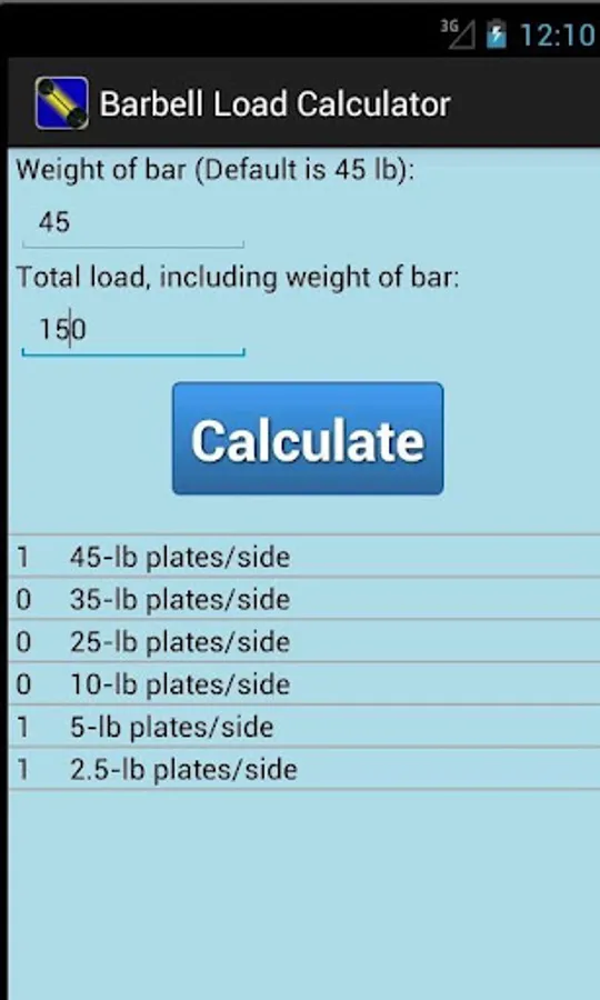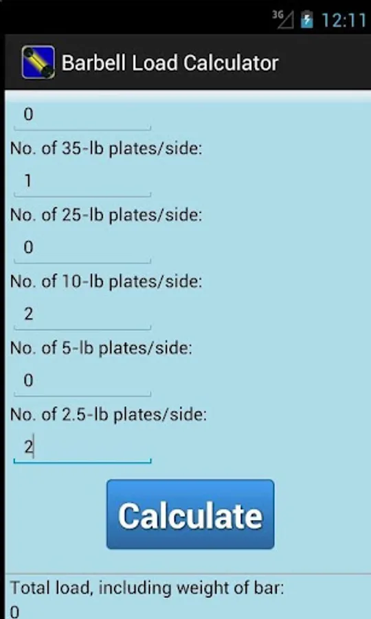 2. Calculates the total load, if the bar weight and the number and size of the plates are specified.