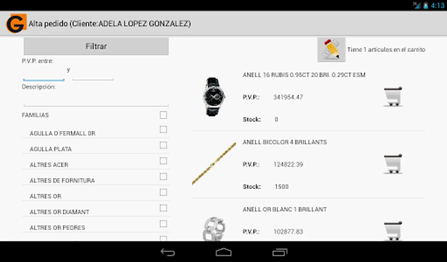 Sales management for jewelers Gemarun using the application. It will allow you to go online with your business data. Display stock, catalog or ordering your clients.