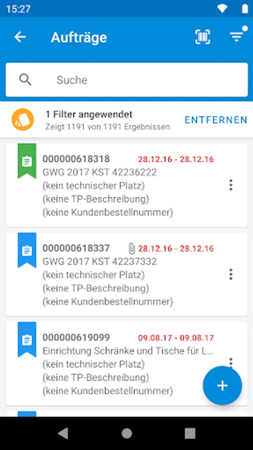 The Bilfinger Work App allows the user to display SAP orders, create confirmations and create notifications. Furthermore, the user can create SAP orders or enter measurement documents.