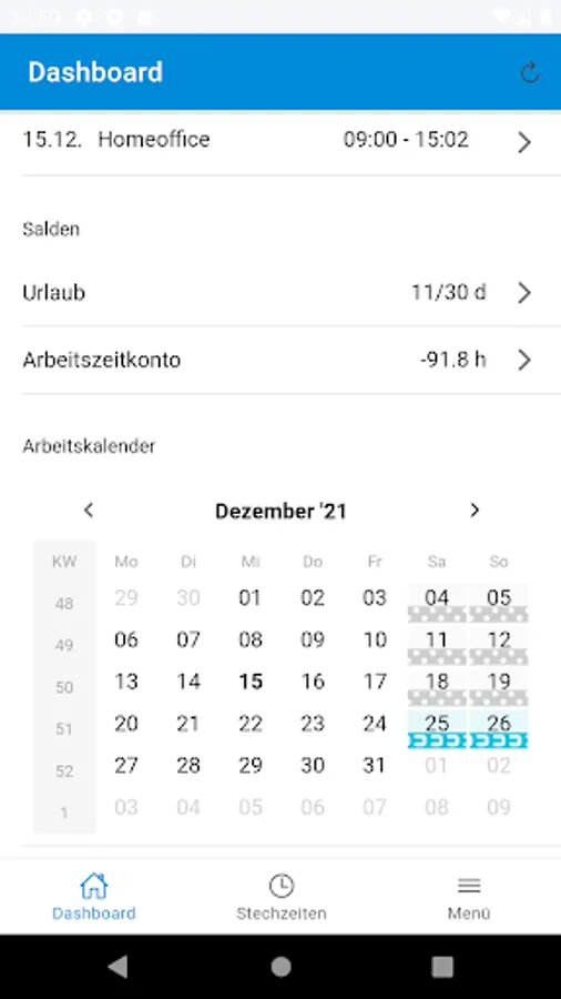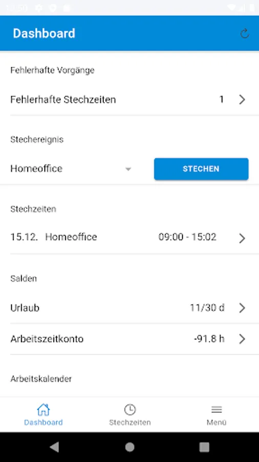 The Bilfinger Time App was developed for all employees of Bilfinger Engineering & Maintenance GmbH. With the app, the user can clock in and out without using a terminal. Furthermore, the user has an overview of the cut-off times via the app and can correct cut-off times and revise rejected cut-off times. A working time calendar for daily balances including colour-coded absences can also be seen on the dashboard. The user has an up-to-date overview of his working time account and vacation status at all times.