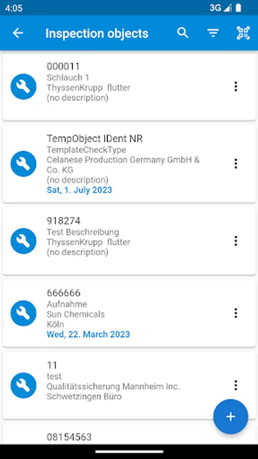 The Bilfinger Check allows the user to create test reports for different objects. The user can create new objects and attach ready-made catalogs of questions to them.