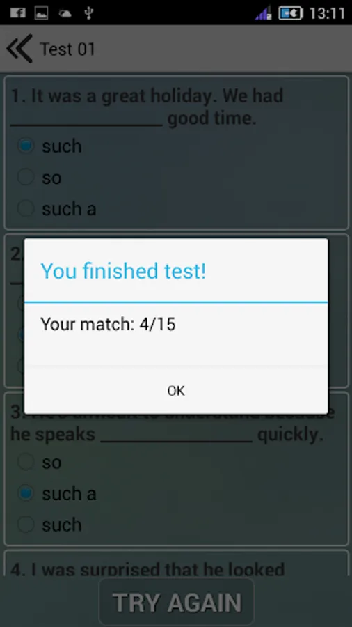 "Test feature" help you to review knowledge of English accordingly via quizzes which have the same formalities as official exams by Tests.