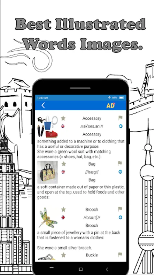 ► Application: "Big words" is the easy and fun new way to learn English, You can learn vocabulary by seeing an images to illustrate words, with audio support phonetic transcriptions and pronunciation recordings by native speakers.