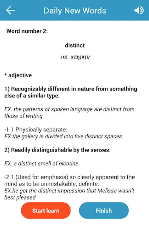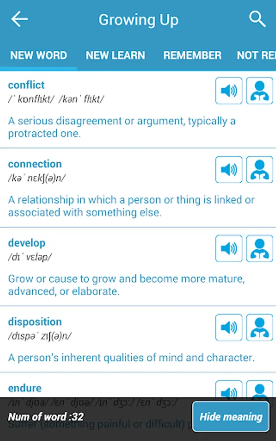 ✔ Daily New Words. The only way to truly learn is persistence! The app helps you learn every day by teaching you some new words. It will also show a push notification to remind you that it is time to study. You can change the number of daily new words show in the app settings. For extra help you can enable an online spell-checker to verify words as you type them.