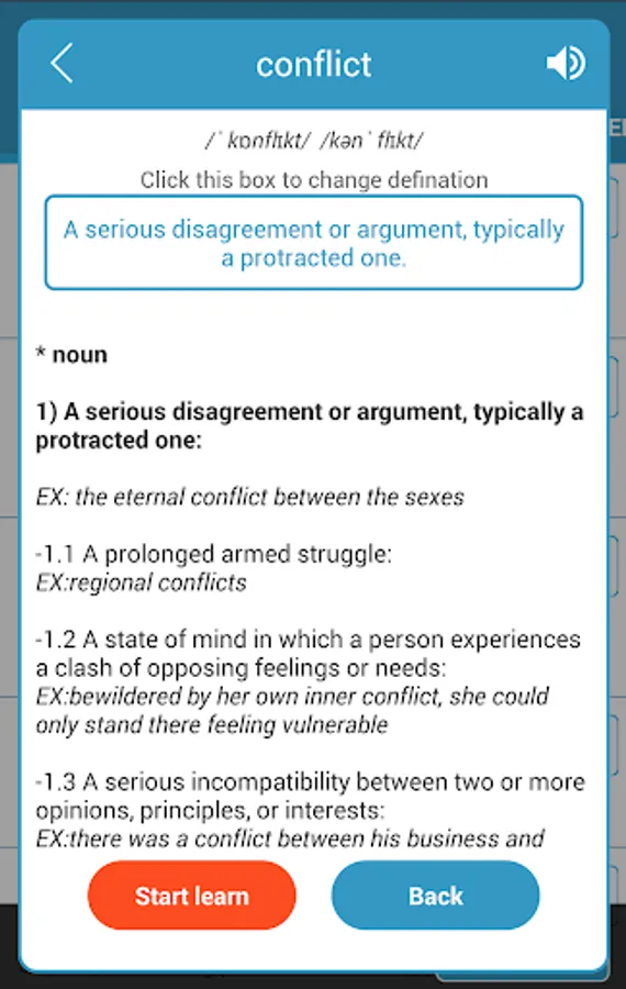 Each vocabulary comes with full English definition, sample usage, phonetic/sound pronunciation and much more details as included in the Oxford dictionary. You also can choose main meaning of each vocabulary from full definition.