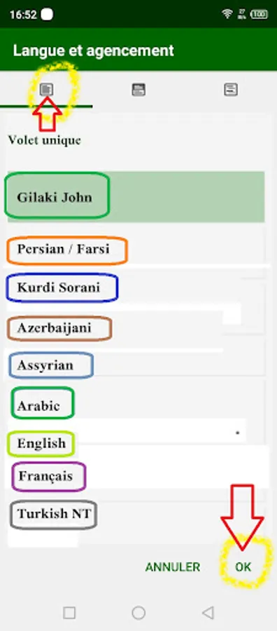 - "two panes" to display the Gilaki at the top and the English, French or one of the other versions at the bottom