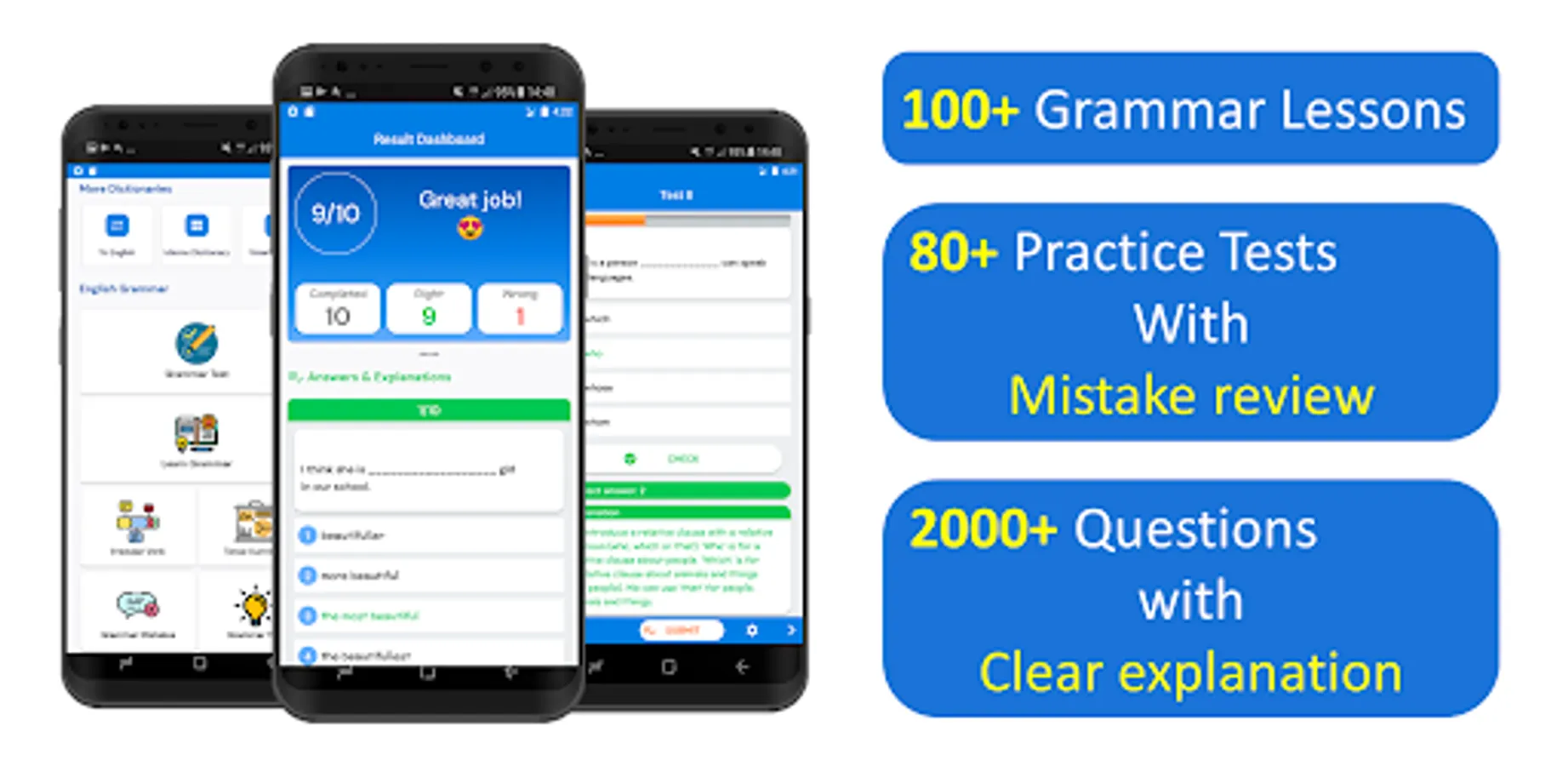 + More than 2000 grammar questions and interactive english grammar exercises.
