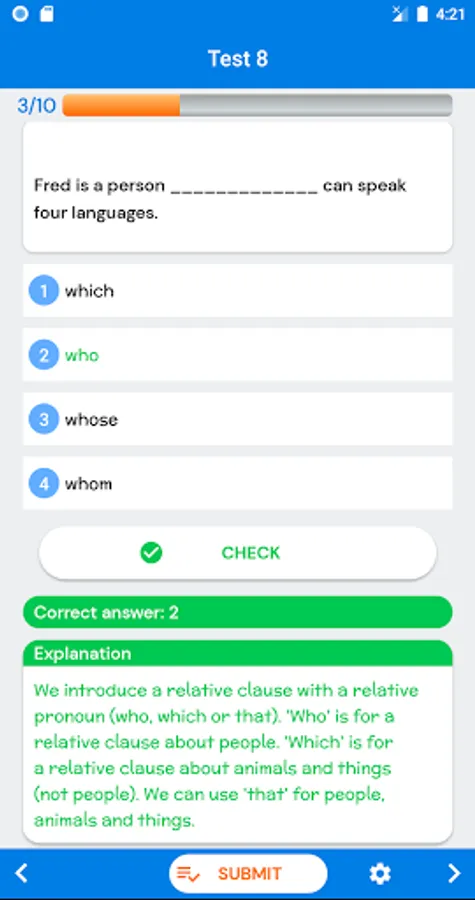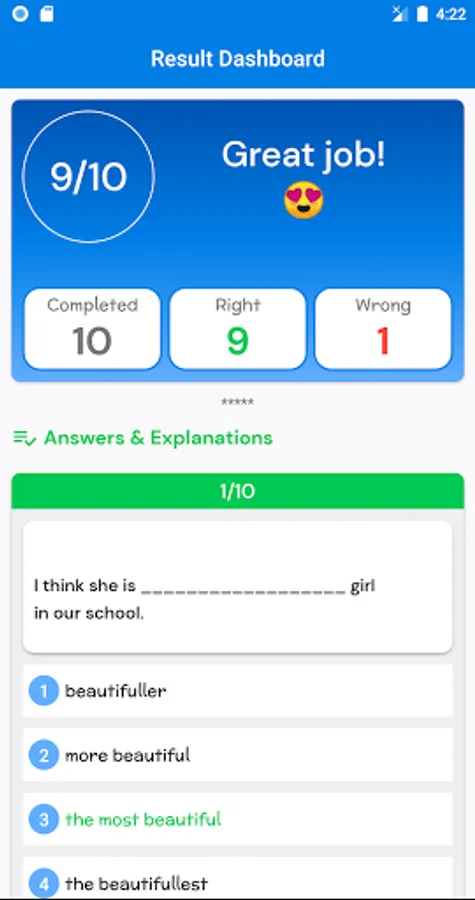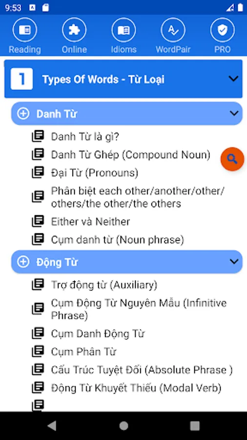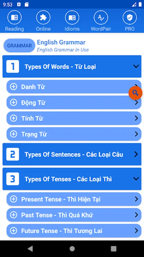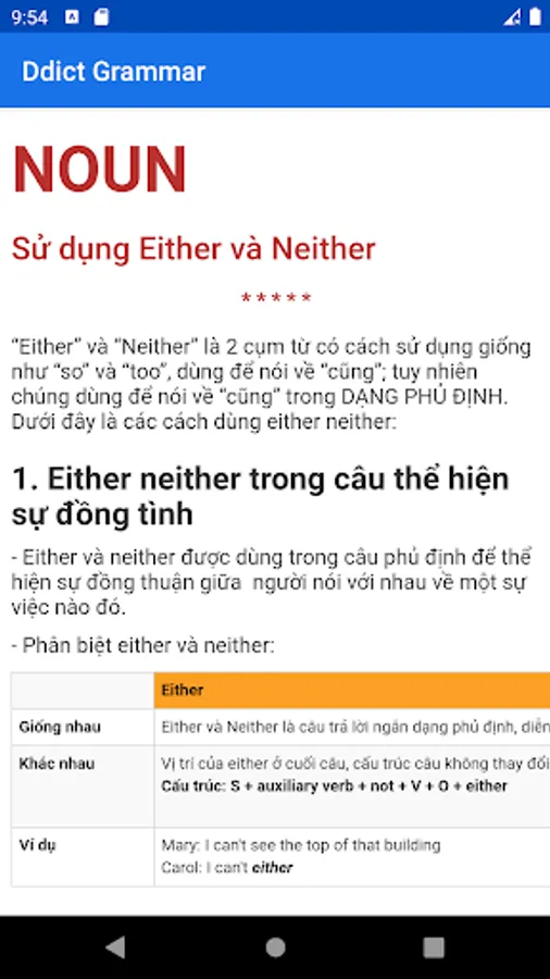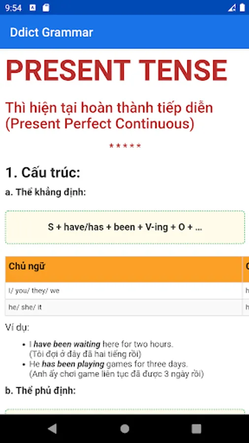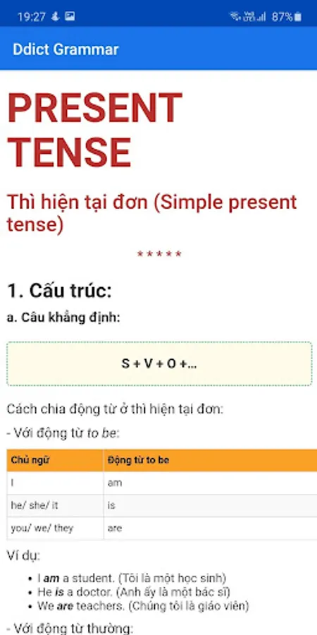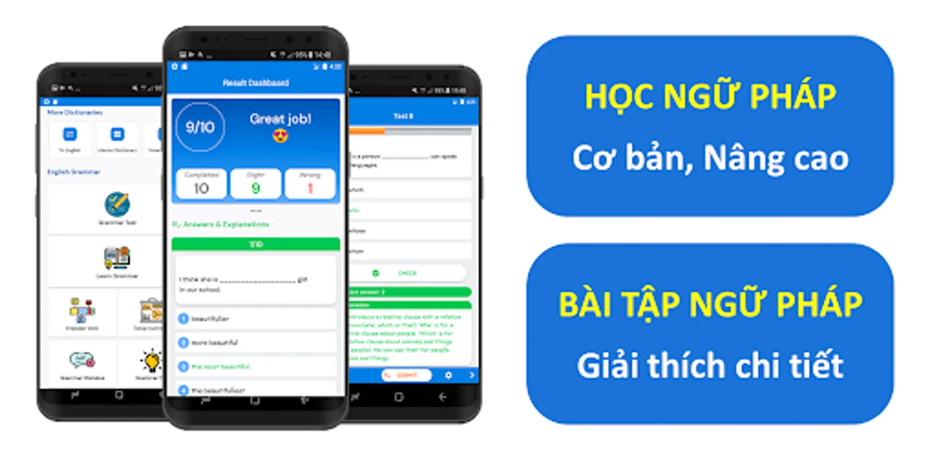 The English Grammar Exercises application includes 2 main parts: grammar lessons and English grammar questions with answers and detailed explanations.