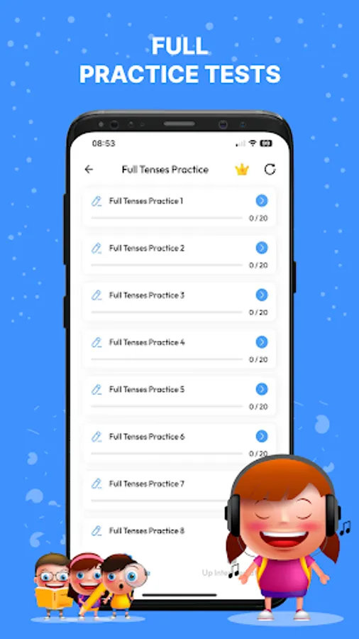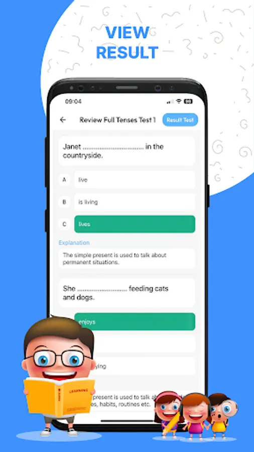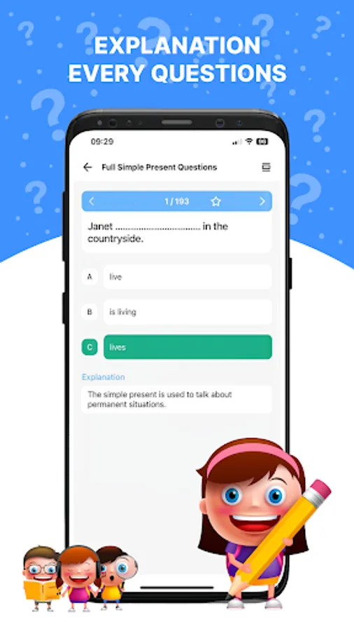 • Test mode with a time limit help you improve grammar skills and memorize questions in the easiest way