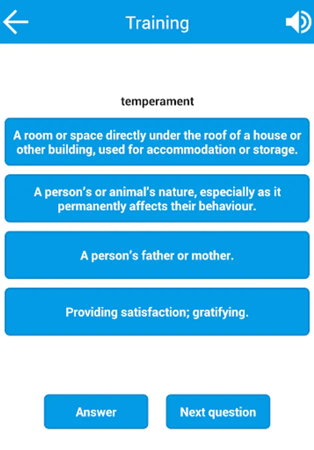 + Show Word - Choose Meaning : a word will be given and you have to choose the correct definition in the set of 4 definitions