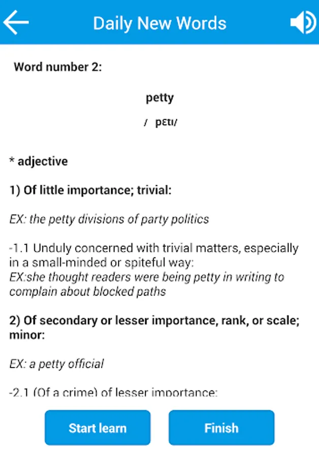 - learn vocabulary : you will complete a word (with disorder characters) 4 times. In the first 3 times, there are suggestions for you to complete word. these suggestions will be shorter after each round and finally you will complete the word without suggestion . when you finish 4 round,the word will move to New Learn category