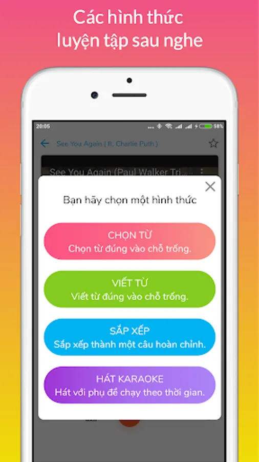 3. Display vocabulary including phonetics, Vietnamese meaning to learn in singing.