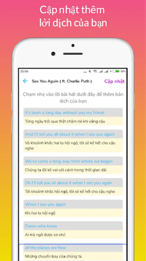 Synthesize the most immersive and meaningful English songs with English - Vietnamese bilingual subtitles, helping you enjoy the melody while improving your listening and speaking skills.