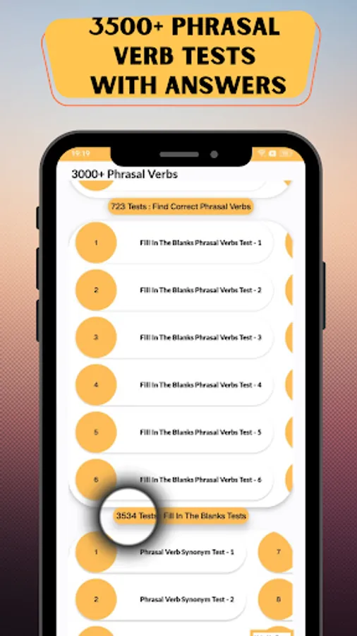 3000+ Phrasal Verbs With Definition & Quiz. 3500 Phrasal Verbs, 4000+ Phrasal Verbs tests make this app better than any other phrasal verbs dictionary. Our app has all basic phrasal verbs like be up, lay out, opt out, pile up, blow up, patch up, act up, melt down, let off, log into, mix up, opt for, pig out, big up, pay back, play along, pop off, act out, look up, plug in, add on, die out, log on, log out, mash up, add up, be down, dig in, log in, log off, feed up, hold on, jam on, kick in, make it, pack up, pop in, care for, give up, jazz up, key to, nerd out, ask in, back up, call up, die for, hit on, pack in, blow off, feel up, jack up, kick out, pay off, pick at, pin down, bag out, beat up, bend down, cap off, feed on, lash out, let in, line up, link up, move up, pin on, play up, act on, ball up, book in, calm down, die down, pull out, carry on, live by, make off, back off, back out, blast off, get along, keep back, pipe down, point out, hold off, move into, pass by, power up, back down, bear on, bear with, carry forward, make of, phase out, carried away, keep away, live with, price up, black out, magic away, knock off, polish up, angle for, play around, block in, live down etc.