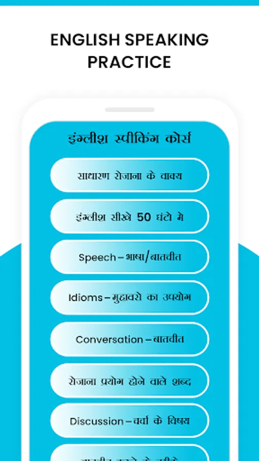 English Speaking Practice contains simple english speaking triks with hindi to english sentence.