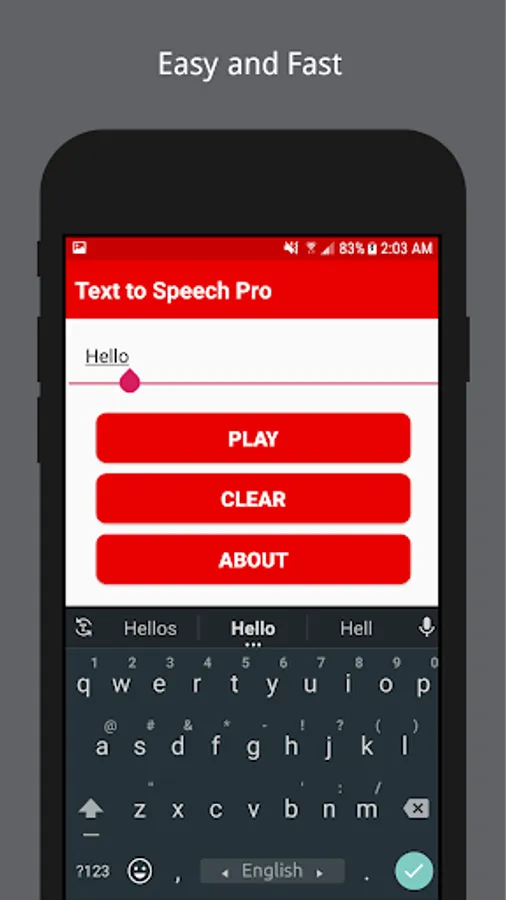 Text to speech pro is the most simple and easy to use TTS app which provides your need of text to voice conversion on the first screen of the app. Just open it, and start typing, or paste text which you have copied earlier, tap on the Play icon to listen it, it will work as voice generator and after listen all the written text which will be pronounced correctly. Clear button will clear all the text.