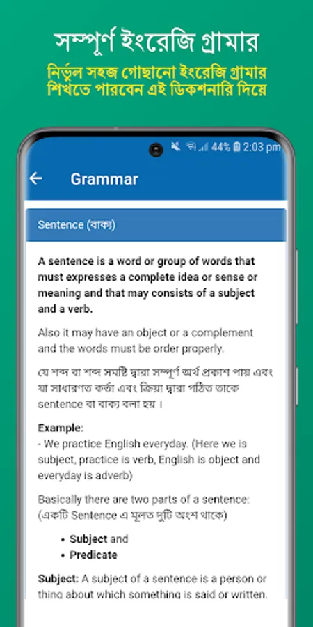 This english to bangla dictionary also includes a full english grammar that described easily.you can learn english grammar easily for this english to bengali dictionary.