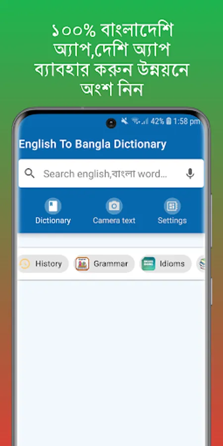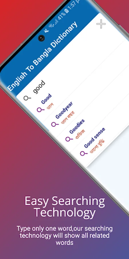This English To Bangla Dictionary app is totally free and Works totally offline!