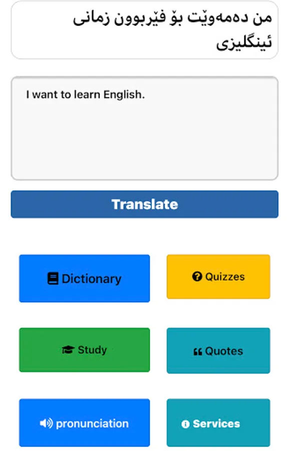 EnglishtoKurdish.com is becoming the most favorite web portal of all age groups including students, professionals, youth, teachers, parents as well as all the family members like it most. We try our best to provide all the essential tools and information of your daily needs and interest.