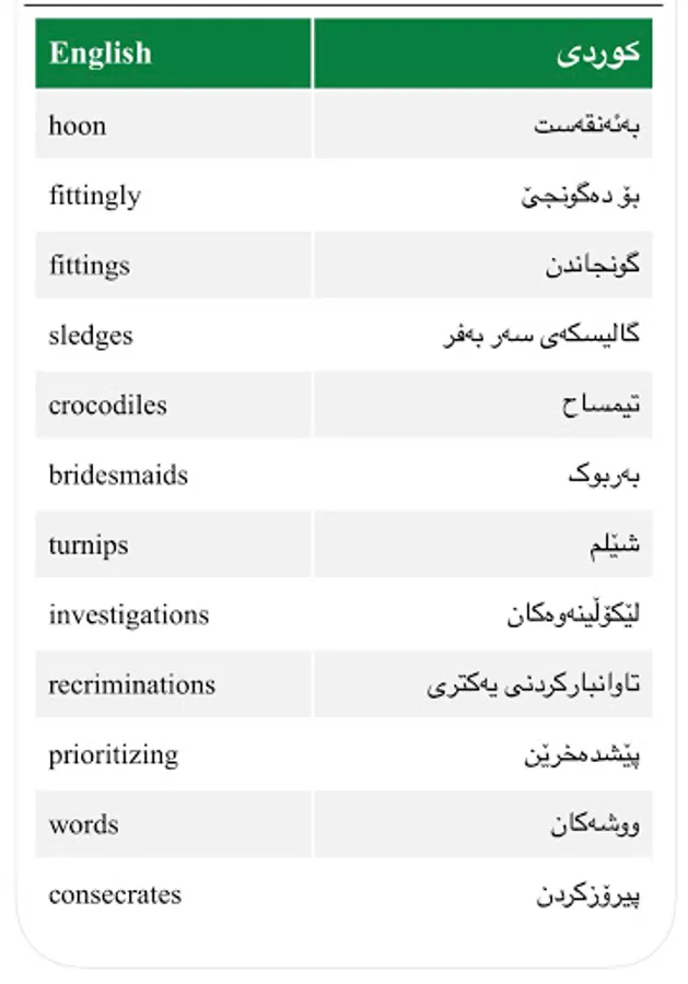 English To Kurdish, this is the most Comprehensive English Kurdish dictionary.