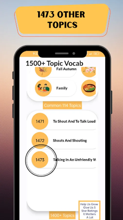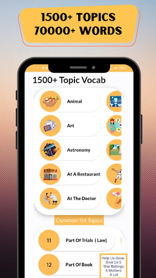 Topic Vocabulary App with more than 1500 Topics. We can proudly say this is the only app with 1500+ Topic related vocabulary.
