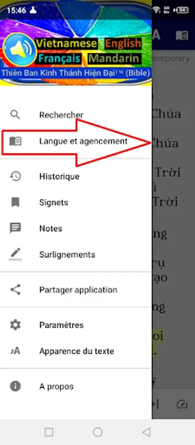 - "two panes" to display the Vietnamese at the top and the Vietnamese Kinh Thánh or the English or the French or the Mandarin version at the bottom