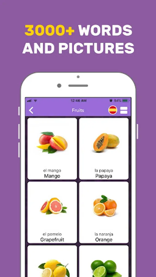 3000+ words with pictures and pronunciations. 14 main topics divided into 75+ subtopics. Including multilingual