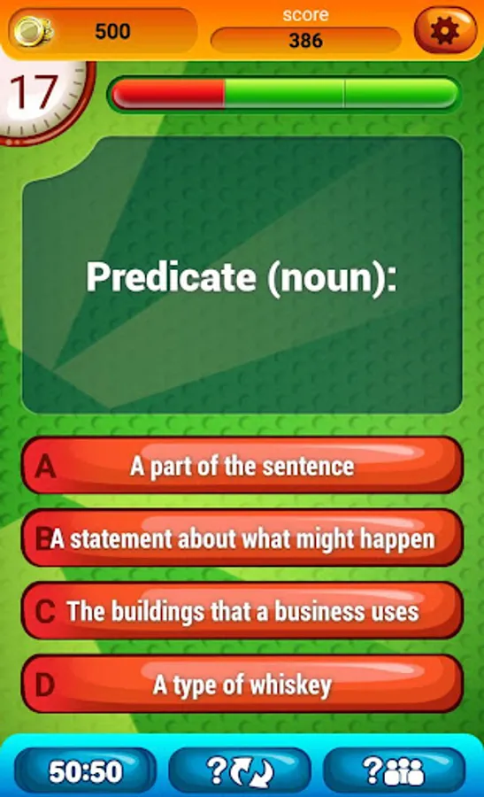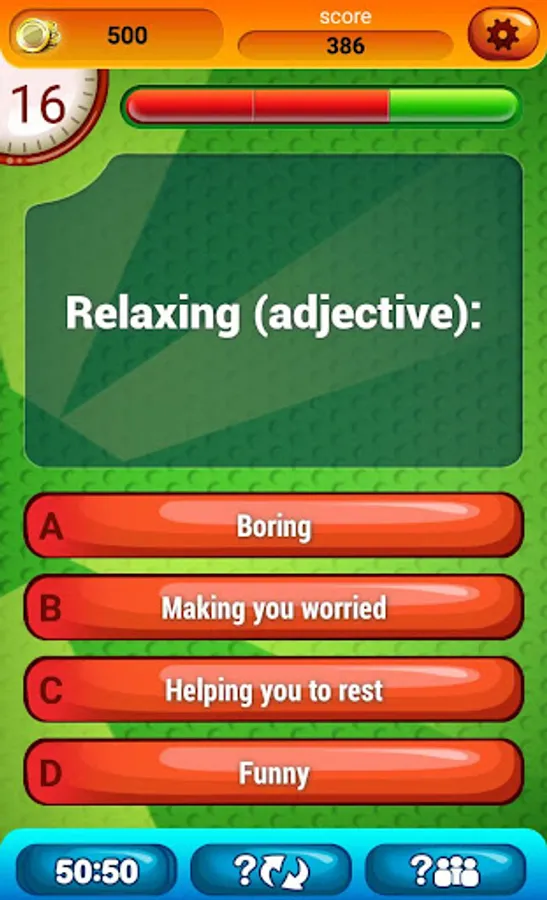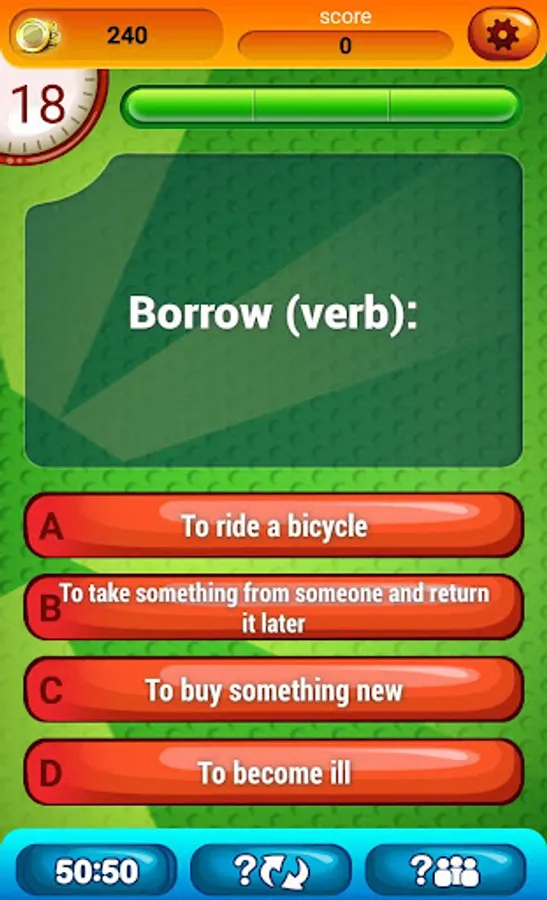 English Vocabulary Quiz Lvl 1 is a very good brain quiz and “trivia game” that will get your brain cells warmed up! Use your free time to improve your IQ and learn daily new vocabulary words!