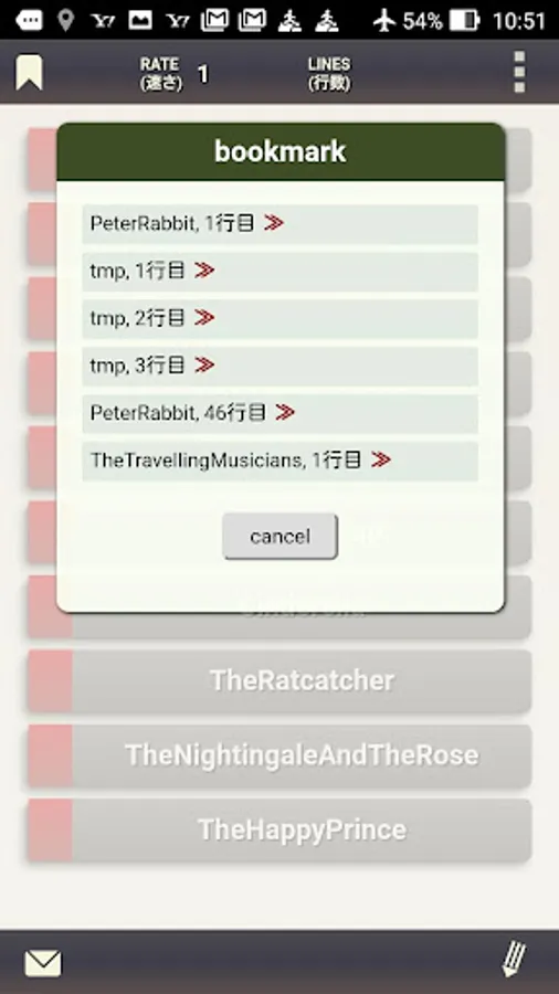 ・物語の途中で中断する場合のブックマーク機能もあります。