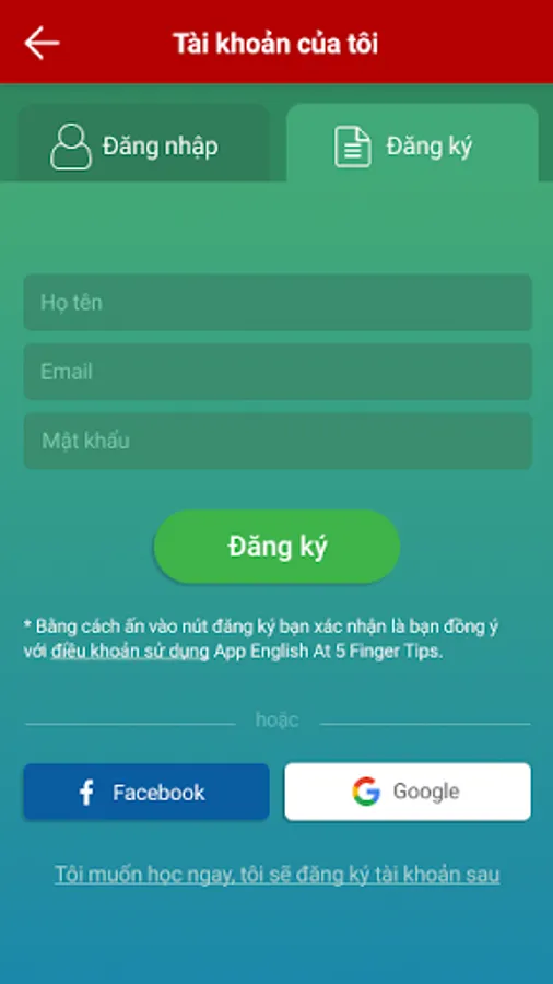 App TIẾNG ANH TRÊN 5 ĐẦU NGÓN TAY (English At 5 Finger Tips) giúp bạn học tiếng Anh từ con số 0 đến khi sẵn sàng luyện thi IELTS học thuật theo một cách hệ thống và khoa học nhất. App sử dụng kèm theo cuốn sách cùng tên là một sáng tạo cả về phương pháp tư duy, cách học tiếng Anh mới mẻ và hiệu quả, và đặc biệt là công nghệ thực tế ảo và trí tuệ nhân tạo áp dụng trong học tiếng Anh.